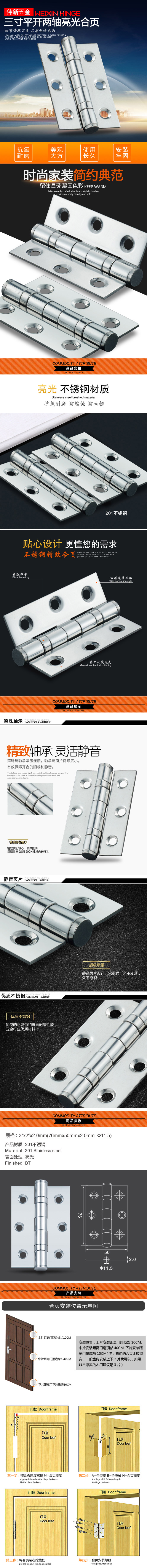 3x2x2.0国标两轴亮光合页 76x50x2.0mm Ф11.5