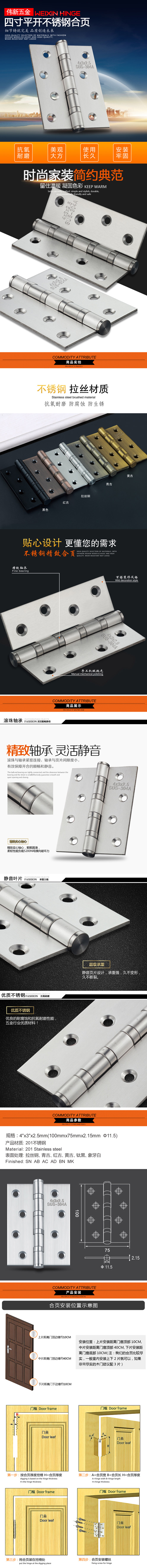 4x3x2.5平开合页小管 100x75x2.15mm Ф11.5