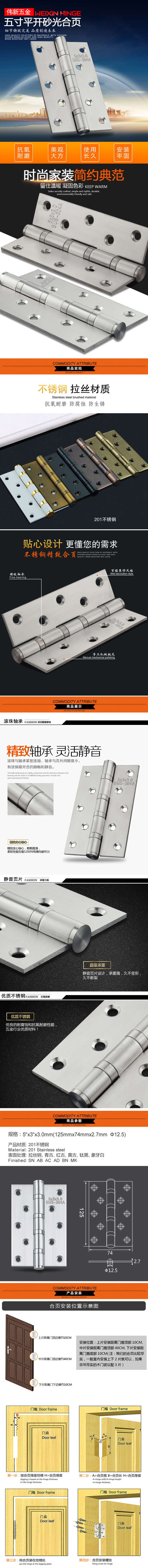 5x3x3.0平开砂光合页 125x74x2.7mm Ф12.5