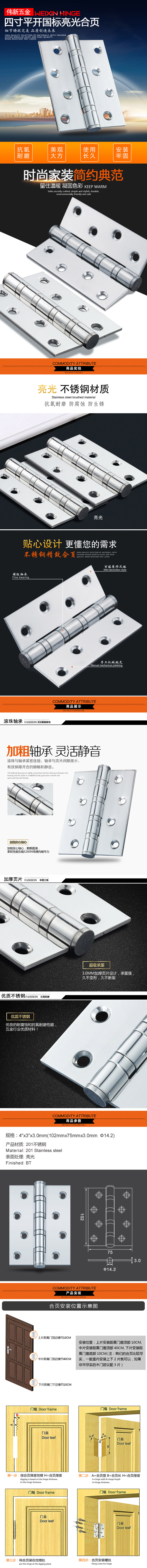 4x3x3.0平开国标亮光合页 102x75x3.0mm Ф14.2